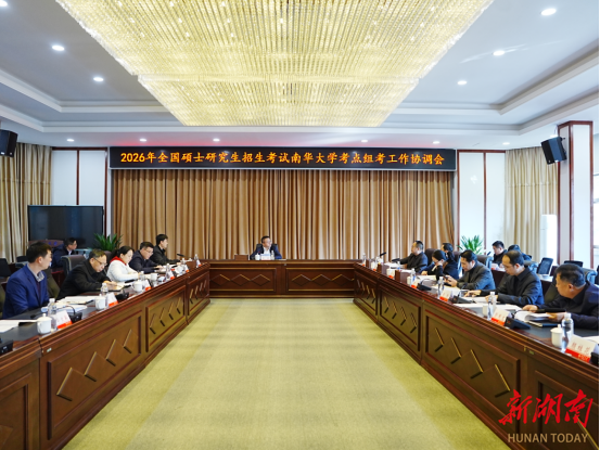 湖南日报·新湖南客户端12月18日讯(通讯员 杨昌玲 曹正平)12月16日,南华大学召开2026年全国硕士研究生招生考试南华大学考点组考工作协调会。南华大学校长夏昆出席会议并强调,要深入贯彻党中央、国务院关于招生工作的决策部署,严格落实教育部及全省硕士研究生招生考试安全工作会议精神,弘扬求真务实的工作作风,加强协同联动,压实各方责任,强化服务保障,全力实现“平安研考”目标。南华大学党委副书记李乐主持会议。