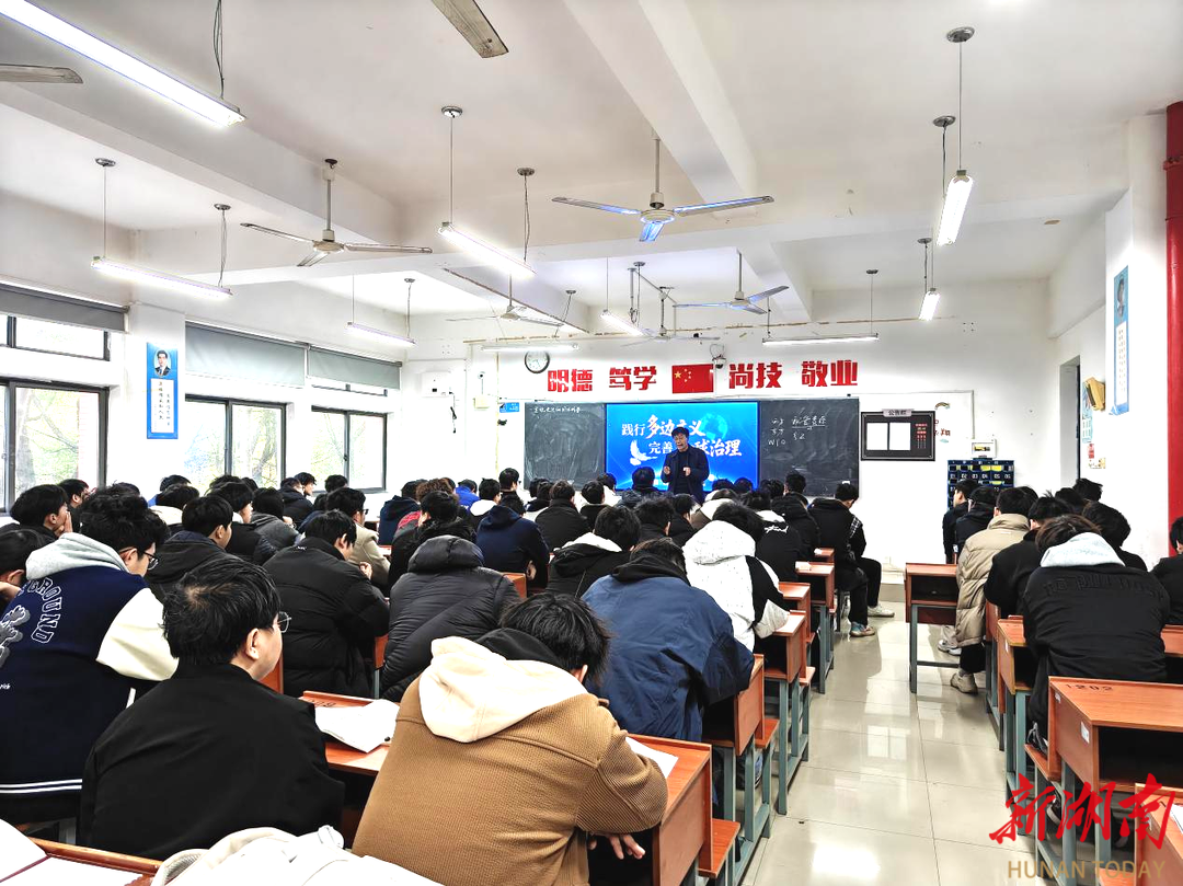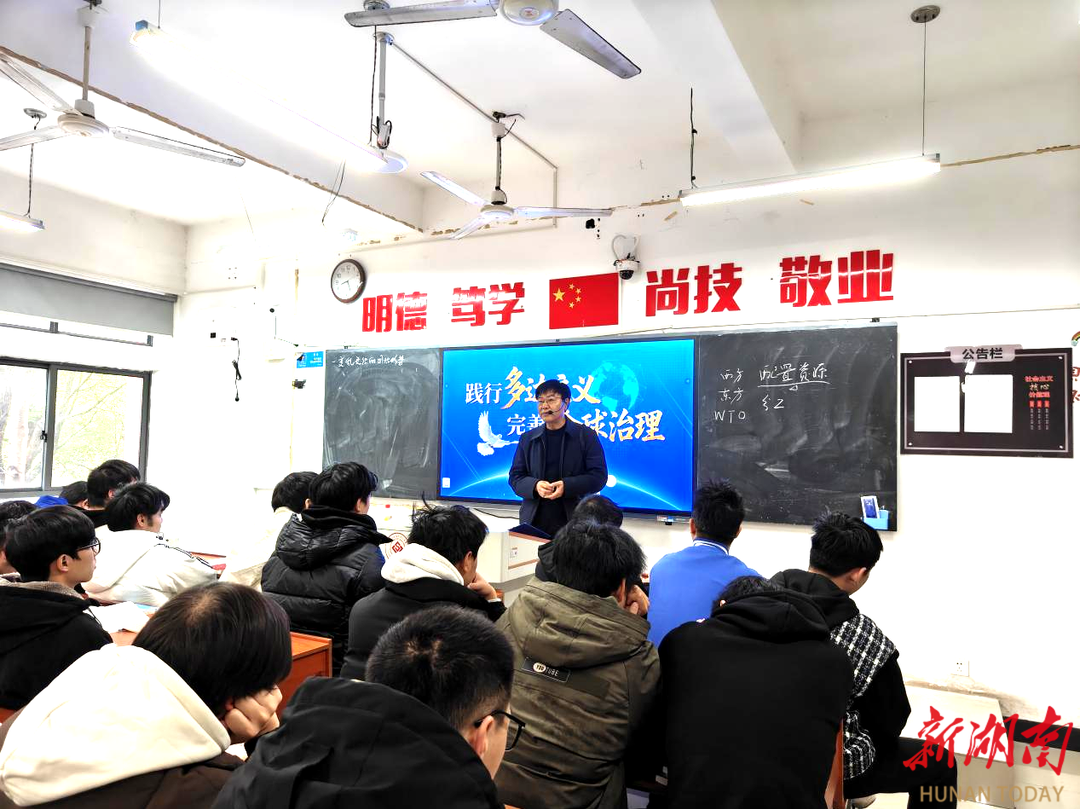 湖南日报·新湖南客户端12月18日讯(通讯员 唐紫薇)12月17日上午,湖南有色金属职业技术学院党委副书记、院长谭骁彧以“践行多边主义 完善全球治理”为主题,为焊接2401班、机电2407班学生讲授了一堂生动的形势与政策课。