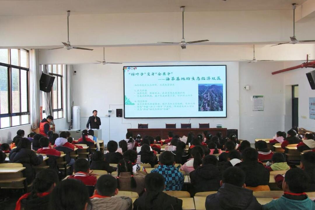 新湖南客户端12月18日讯(通讯员 吴苏琦 朱拓基 伏桑)原来家门口的油茶林,既是‘生态伞’也是‘钱袋子’!”今天,平江县大洲乡中心小学的教室里掌声阵阵,平江县“天岳青语”选调生宣讲团走进学校,开展“青赴绿意 大美湖湘”青少年生态文明宣讲活动,100余名师生与村干部代表共赴一场“生态+发展”的知识盛宴。