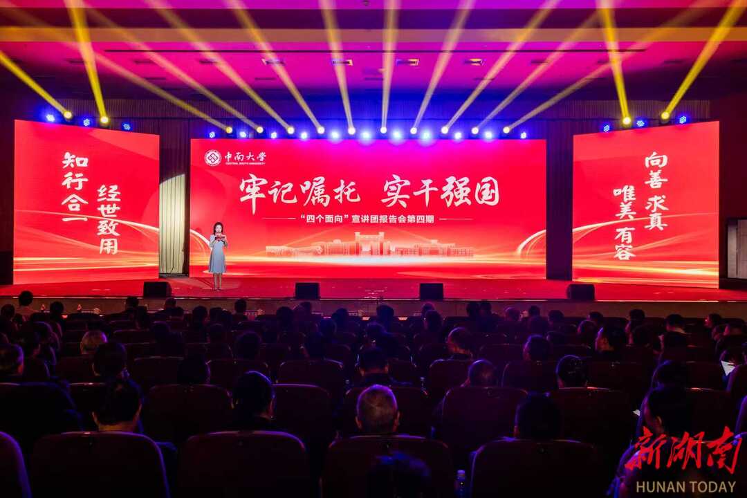 湖南日报12月18日讯(通讯员 田可)12月17日下午,中南大学在潇湘校区中南讲堂举行“四个面向”宣讲团第四期报告会。报告会以“牢记嘱托,实干强国”为主题,通过人物讲述、情景演绎等形式,生动展现了学校师生面向世界科技前沿、经济主战场、国家重大需求、人民生命健康的奋斗实践。