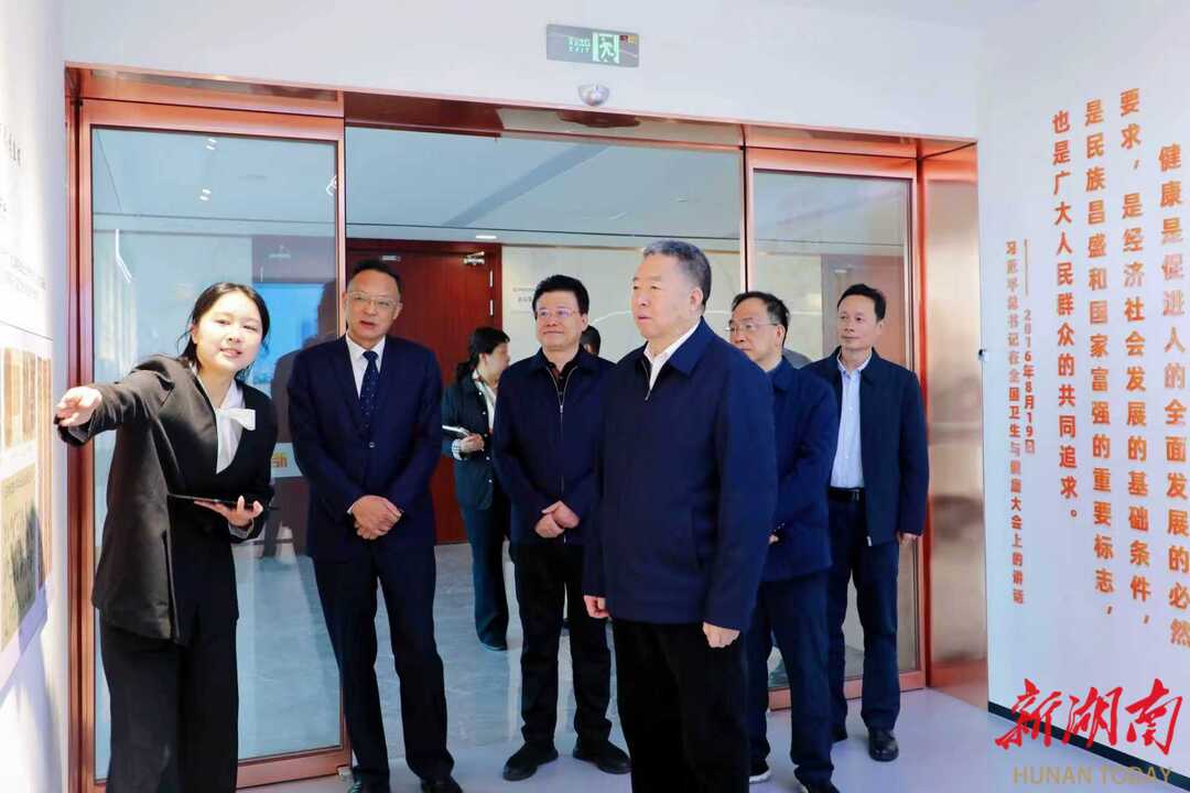 (12月17日,省政协主席毛万春率队在湖南医药发展投资集团有限公司宣讲调研。图为毛万春在公司展厅调研。)