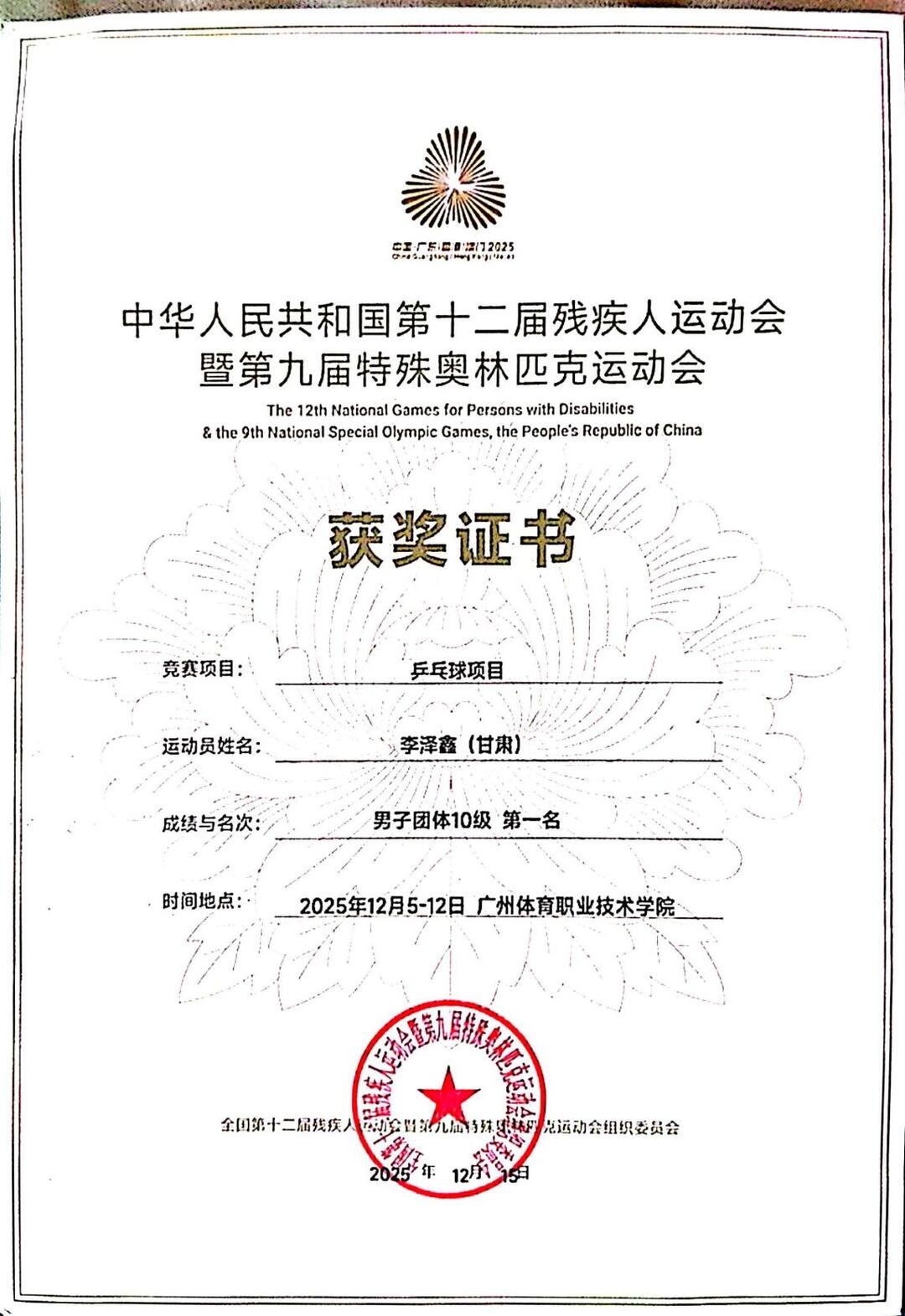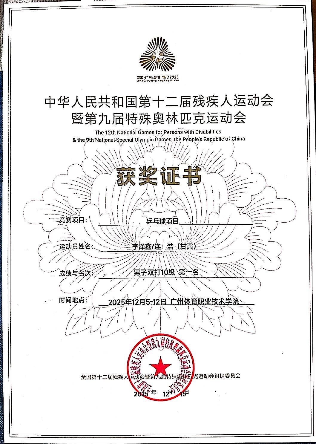 乒乓骄子李泽鑫斩获双冠入选国家队,孔文婕入围残奥集训