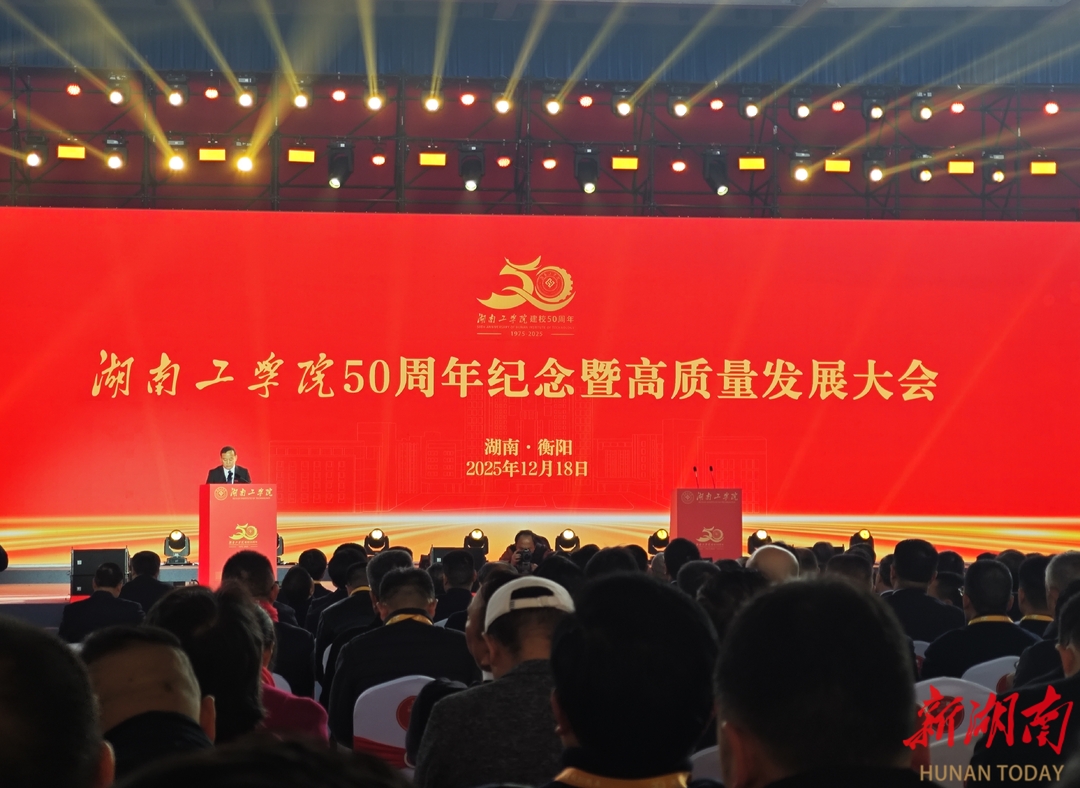 湖南日报·新湖南客户端12月18日讯(通讯员 肖中云 李琪 彭婷)12月18日,湖南工学院举行建校50周年高质量发展大会。省市领导、各界嘉宾与海内外校友欢聚一堂,同庆五秩华诞,共商发展大计。
