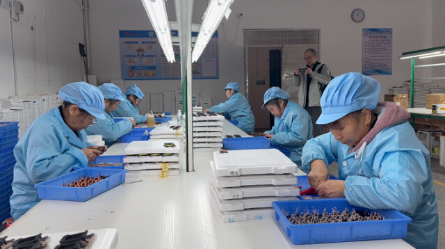 (12月4日慧华电子厂女工正忙碌工作。杨建建 摄)
