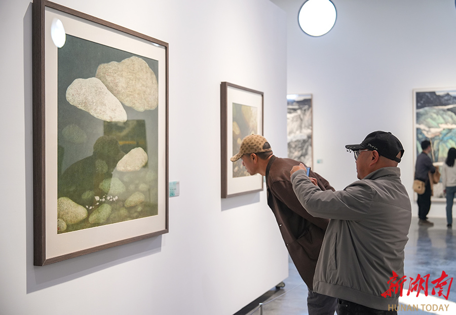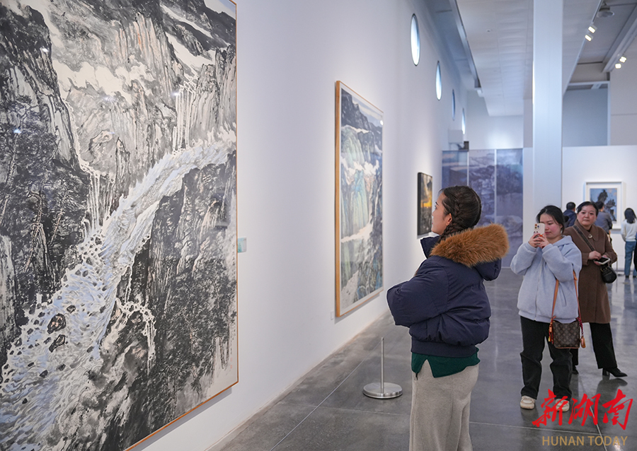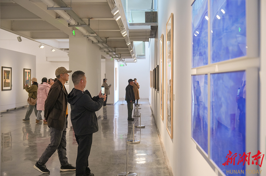 12月18日,市民在观展。当天,湖南美术馆永州分馆正式开放。作为全省首个市州级省级美术馆分馆,该馆由1992年建成的虎岩粮仓改造而成,将为湘粤桂交界地区民众提供高品质艺术体验,成为区域重要文化新地标。 文佳星 摄(湖南图片库)