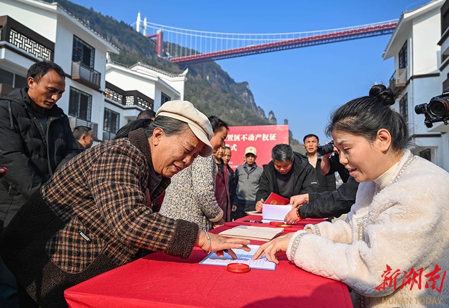 为妥善做好移民安置,矮寨镇共建设290套移民安置房,并开设专窗为动迁移民提供不动产登记服务,助力顺利交房。截至目前,已有82户移民通过统一免费办理方式取得不动产权证书。后续将根据资料完善情况,陆续为其余安置户发放证书。 湖南日报全媒体记者 郭立亮 摄