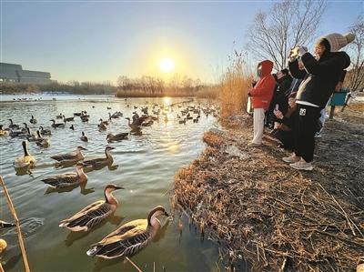 作为城市湿地典范,奥森公园每年冬春时节都成为诸多迁徙鸟类的临时栖息地。大雁在这里停歇、栖息,为都市人带来了一场不期而遇的邂逅,让市民在家门口也感受到了生态之美。