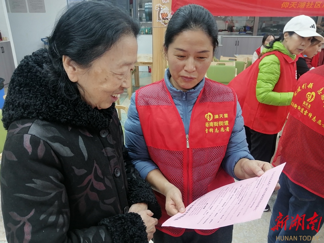 湖南日报·新湖南客户端12月19日讯(通讯员 曹帅)12月18日下午,长沙市天心区裕南街街道仰天湖社区党委引领,携手仰天湖社区新时代文明实践站、邻帮公益服务中心、“邻”聚力志愿服务队、目宁眼科、和美新社、年轮居家养老服务站开展“冬至添暖意,指尖传温情”冬至主题活动。
