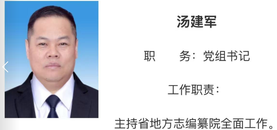 湖南日报·新湖南客户端12月19日讯(记者 周帙恒)据湖南省地方志编纂院官方网站“机构领导”栏目显示,汤建军任党组书记,主持省地方志编纂院全面工作。