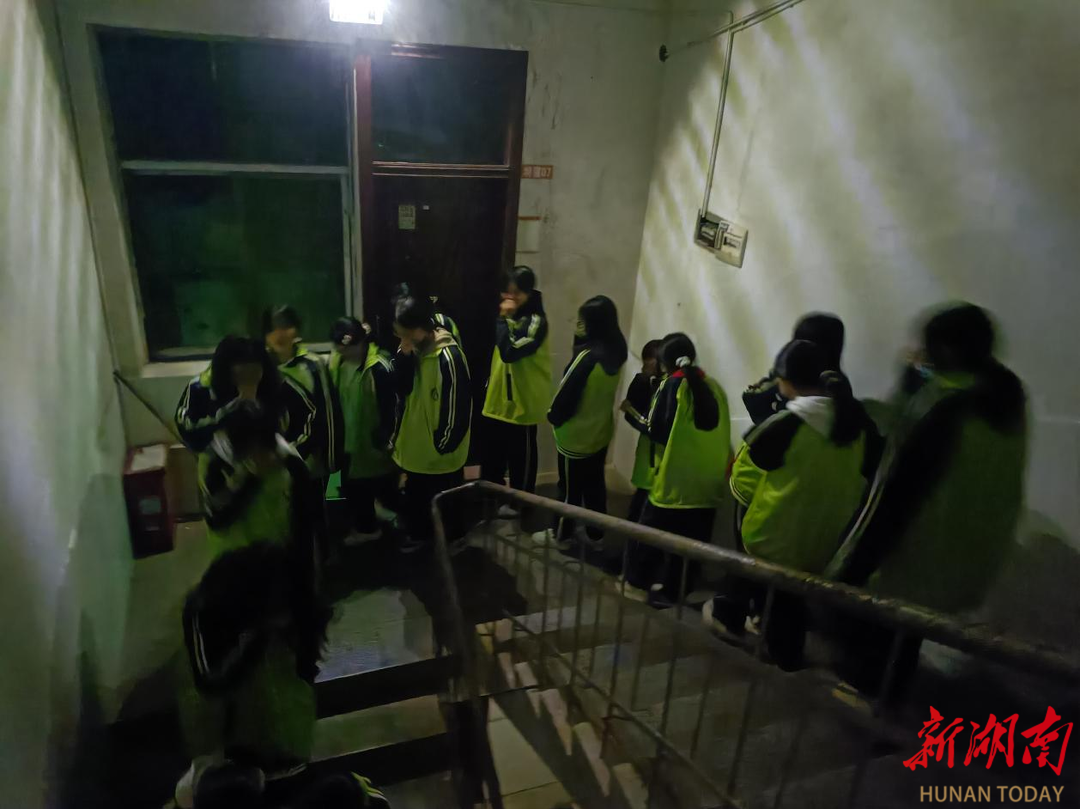 当晚演练模拟宿舍楼突发火情场景,随着校园广播发出警报信号,各寝室生活老师迅速开门引导学生,班主任及导护人员在各楼层、楼梯口有序疏导。同学们按照预设方案,以中间寝室为界分东西两路,采取低头弯腰、湿毛巾捂口鼻的正确姿势,成单行从指定楼梯快速撤离,全程无推挤、无慌乱,仅用13分零7秒便全部安全抵达田径场指定区域。