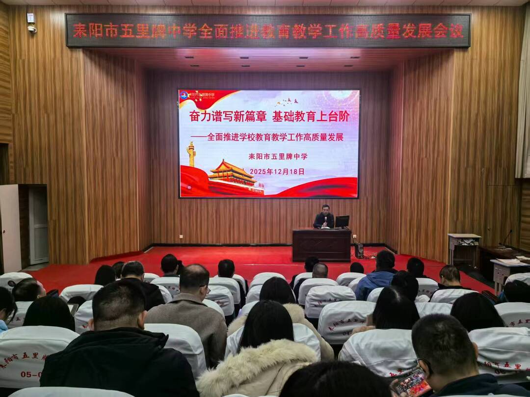 新湖南客户端12月19日讯(通讯员 王美谷)12月18日,耒阳市五里牌中学召开全体教职工大会,专题传达学习衡阳市教育大会暨建设区域教育中心动员大会精神,分析学校教育教学工作重点,部署下阶段核心任务。
