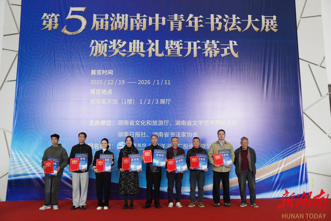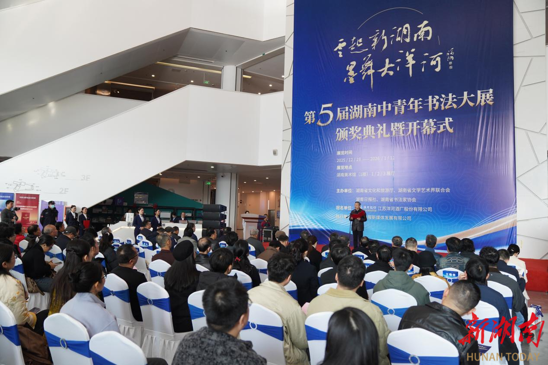 湖南日报·新湖南客户端12月19日讯(记者 刘瀚潞)今天上午,“云起新湖南 墨舞大洋河”第五届湖南中青年书法大展开幕式暨颁奖典礼在湖南美术馆举行。展览集中呈现202件形式多样、内容丰富的书法作品,为观众打造了一场精彩纷呈的艺术盛宴。