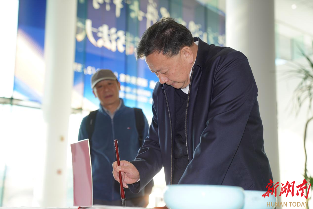 值得一提的是,本届大展不仅“可看”,更注重增强公众的参与体验。展厅内特别设置了“新年祝愿墙”,多位书法家现场挥毫,为市民书写新春寄语,观众在观展过程中,有机会获得由书法家亲笔书写的新年福字等文创作品,在翰墨馨香中迎接新岁。与此同时,现场还设置了“湖南日报拍报机”,观众可体验拍照“上头条”的互动环节。
