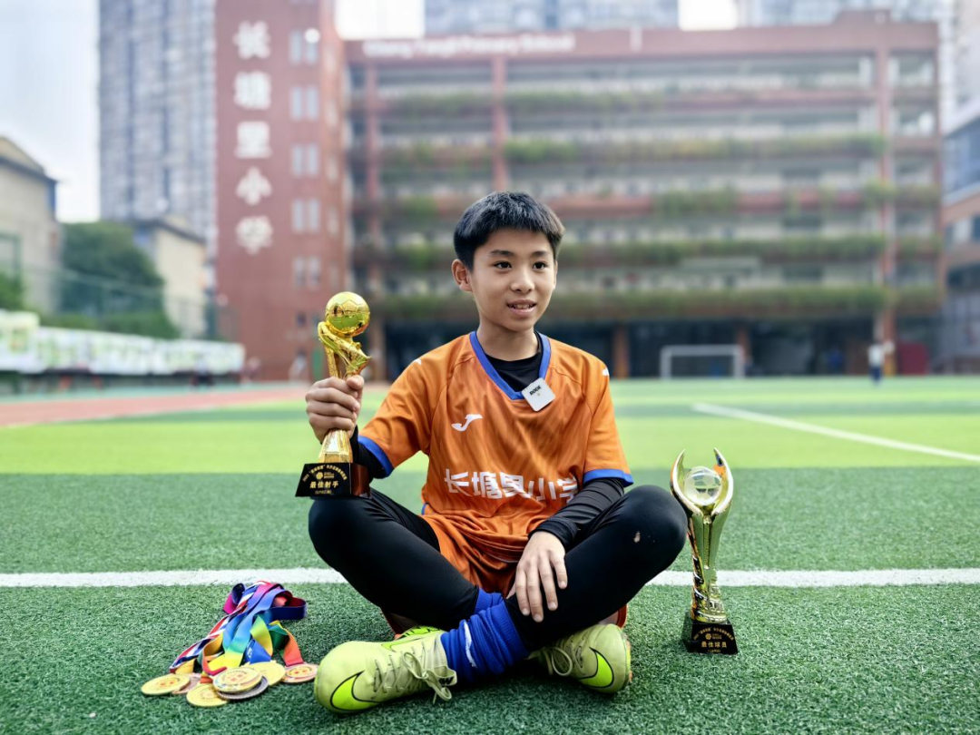 2025年,他作为主力,和队友们一起先后代表学校参加中国城市少儿足球联赛全国总决赛、“百队杯”全国总决赛等赛事,均获得季军。面对成绩,他显得淡定而感恩:“我热爱足球,我会一直踢下去,足球带给我强健的体魄和美好的友谊。”