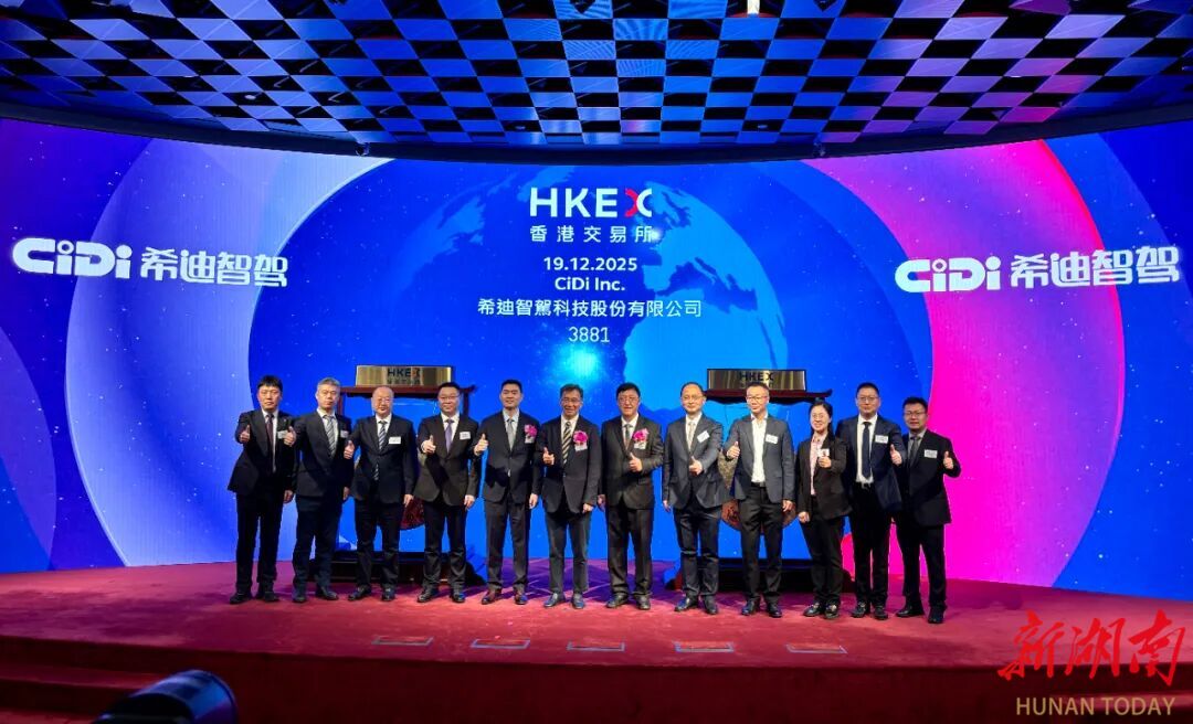 湖南日报·新湖南客户端12月19日讯(记者 王晗)继12月17日湘江新区产业引导基金直投企业沐曦集成电路(上海)股份有限公司(简称“沐曦股份”,股票代码:688802)登陆上海证券交易所科创板后,今天,其本土培育的希迪智驾科技股份有限公司(简称“希迪智驾”,股票代码:03881.HK)在港交所主板挂牌上市。一周内两家企业相继上市,有力彰显了湘江新区“产业投资+资本招商”发展战略的强大培育效能。至此,湘江新区上市公司总数已达57家。