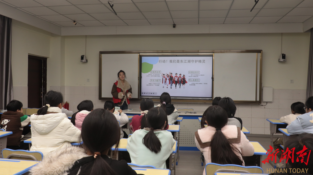 环保理论宣讲环节,宣讲团成员基于本地生态发展实际,分享东江湖和翠江的水资源治理奥秘。课程中设置“湿地变身探秘”环节,带领同学们解锁郴州“空气清新、水质清澈、完鸟翔集”的山水画卷密码。