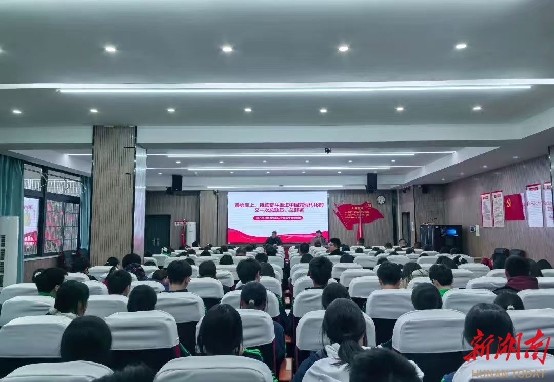 新湖南客户端12月19日讯(通讯员 吴艳 摄影 戴卫)12月16日,湘潭大学附属实验学校(简称湘大附校)特邀请湘潭市委党校副校长李姗姗同志进行党的二十届四中全会精神宣讲报告会,旨在深入学习、深刻领会党的二十届四中全会精神,引导广大师生切实把思想和行动统一到党中央决策部署上来。会议由该校党委书记贺泽文主持。学校全体党员同志、部分教师代表及九年级学生代表齐聚一堂,共同聆听这场思想盛宴。