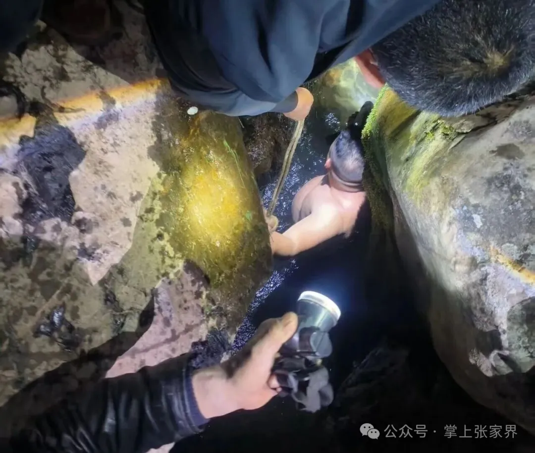 晚8时许,救援出现转机——村干部带领的小组,在麻池河上游一处深水潭旁的岩缝下,找到了蜷缩着的老人。然而那里地势险峻、岩壁湿滑,紧邻深潭,常规方法难以施救。