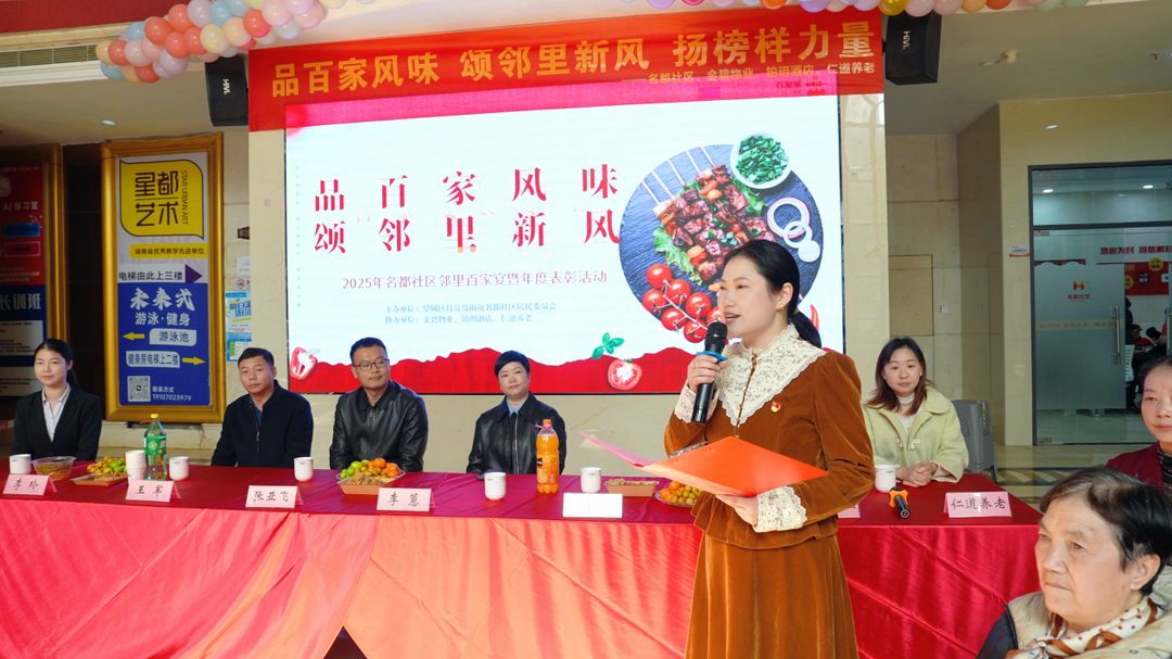 新湖南客户端12月19日讯(通讯员 谭宇)人间烟火气,最抚凡人心。为搭建邻里连心桥梁、厚植守望相助温情、弘扬崇德向善新风,今日,望城区月亮岛街道名都社区携手金碧物业、铂玥酒店、仁道养老等单位,举办2025年邻里百家宴暨年度表彰活动。区市场局机关党委副书记李蕙、月亮岛街道党工委委员、办事处副主任张亚飞及辖区居民等共100余人共同参与此次活动。以美食为媒聚邻里,以表彰聚力筑温情,共赴一场暖意融融的冬日之约。