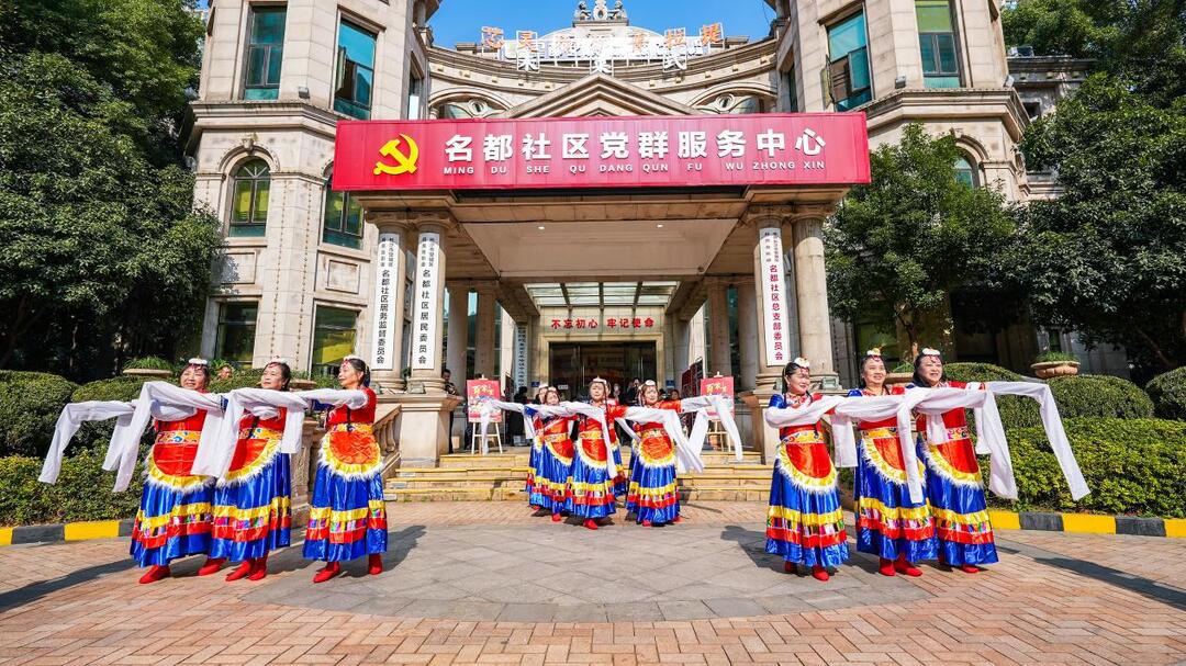 活动现场喜庆氛围拉满,大气醒目的主题背景板矗立入口,色彩斑斓的气球与串串彩旗相映成趣,精心布置的拍照区静候居民定格温馨瞬间。居民们携拿手好菜陆续到场,红烧肉的醇厚、糖醋鱼的鲜香、凉拌菜的爽口、特色糕点的软糯……一道道佳肴整齐陈列,香气氤氲、琳琅满目。既有承载乡愁记忆的传统菜式,也有融入创新巧思的特色美味,每道菜里都藏着居民的家常故事与暖心心意。暖场环节,浩龙舞蹈队《藏族舞》灵动洒脱,快乐乐团的《翻身农奴把歌唱》活力昂扬,两首节目迅速点燃现场氛围,掌声与喝彩声此起彼伏。