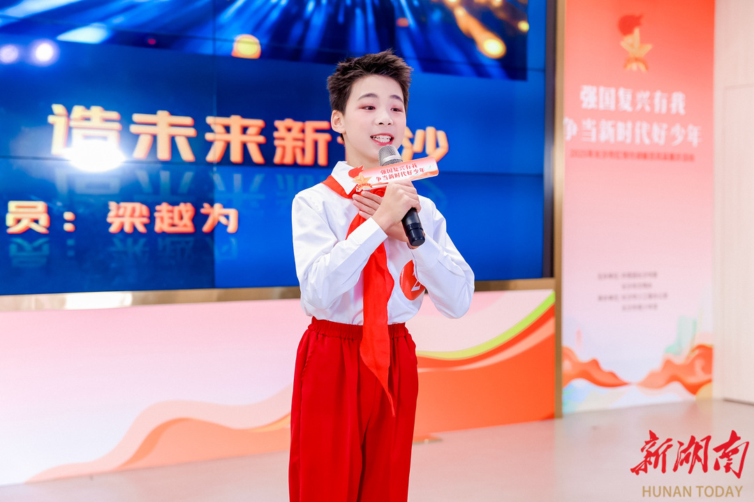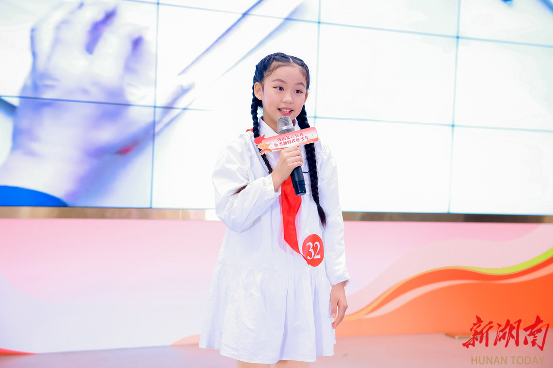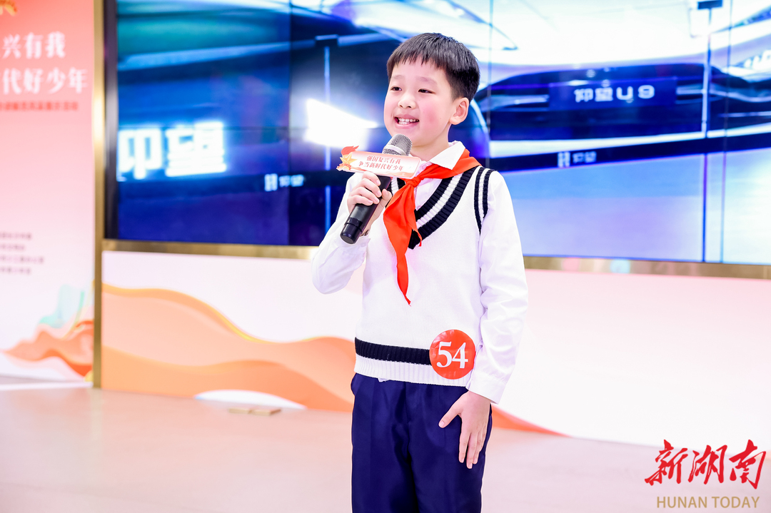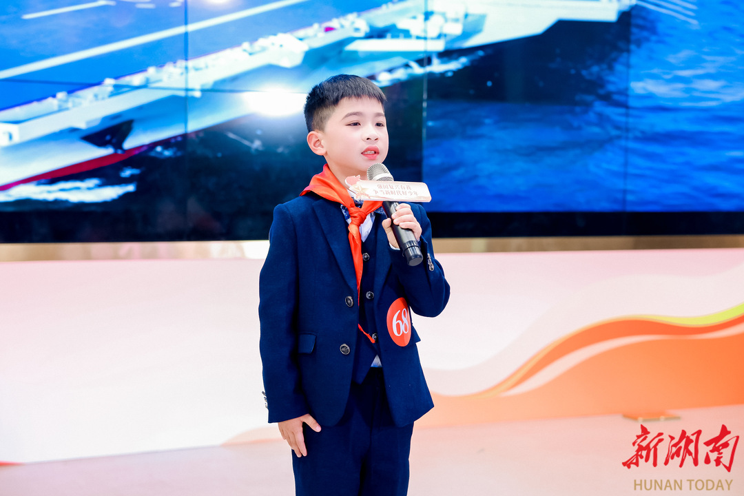 活动在嘹亮的《中国少年先锋队队歌》中拉开序幕,风采展示环节亮点纷呈。小学组选手以纯真视角诠释湖湘精神,或深情讲述《李维汉爷爷的光辉岁月》等英雄故事,再现先辈忠诚坚守;或聚焦《长沙铜官窑的千年出海故事》等本土文化,流露对家乡的深切认同;或聚焦《长沙“中国芯”》等科创主题,彰显强国志向。