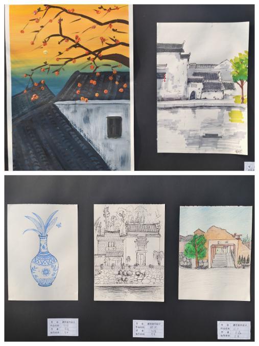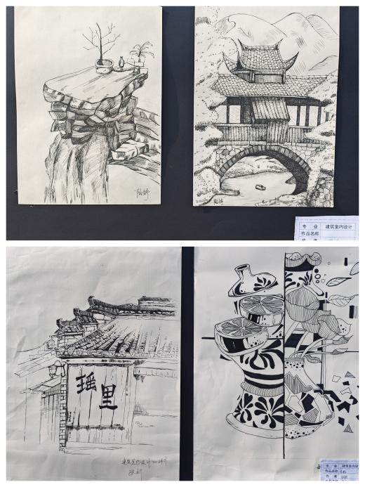 “快看!这个陶瓷冰裂纹理的室内墙面设计稿也太有艺术感了!”“原来景德镇的非遗瓷艺还能和室内设计结合得这么巧妙,我以后也要去瑶里采风实践!” 画展现场人头攒动,驻足观赏的师生们对着一幅幅作品频频称赞,不少低年级学生更是围着学长学姐的作品认真请教创作思路,现场洋溢着浓厚的艺术交流与学习氛围。