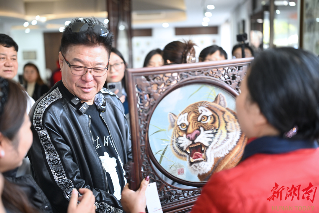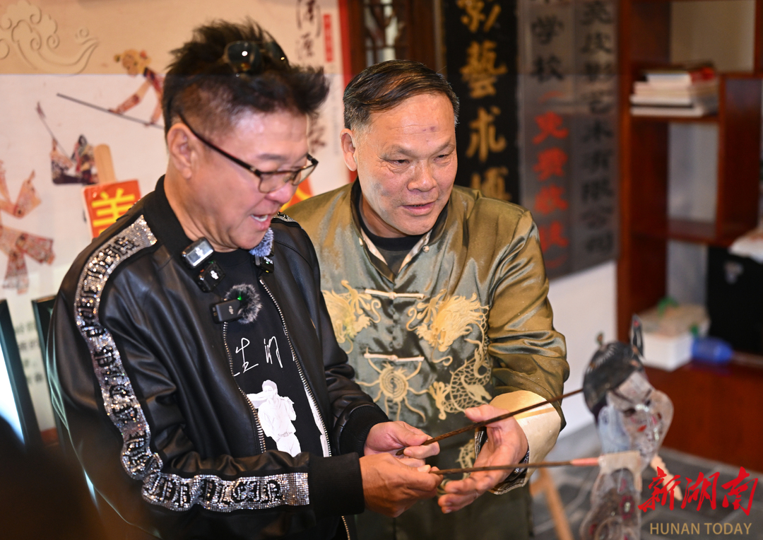 在湘玥刺绣体验馆里,姜育恒鉴赏了“落针无悔”的超绝技艺,在皮影戏后台亲手舞动活灵活现的影人,他笑言“上了一堂最生动的光影课”。当老电影博物馆里响起《再回首》的熟悉旋律,唤醒几代人的青春密码,他与现场演员、游客们温暖合唱、开心互动。