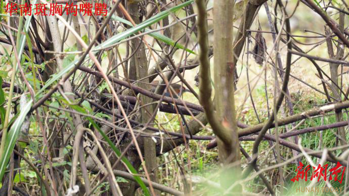 华南斑胸钩嘴鹛胸前挂一条黑白相间的“围裙”,在旁边的灌木丛中若隐若现,她应该是这次“音乐会”的大厨。