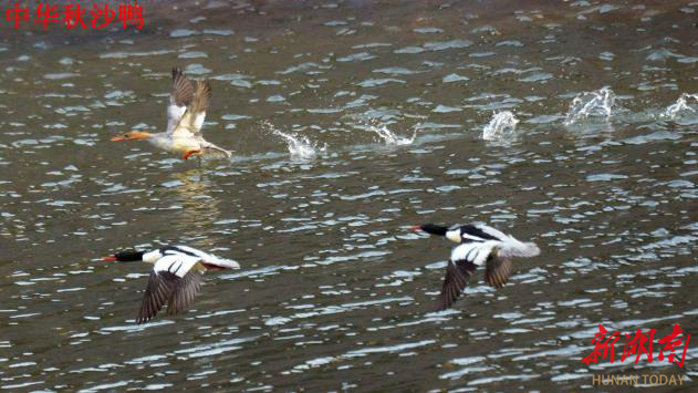 国家一级“特邀嘉宾”——中华秋沙鸭,本应出席这次音乐会全程,也许是会场太小,中华秋沙鸭一行8人只到巫水河停留了一周就走了。也许是缘分吧,首次在巫水河畔一睹她们的芳容,“男嘉宾”头和颈部黑色带有绿色金属光泽,“女嘉宾”头颈棕褐色,鱼鳞状的“盔甲”和羽冠更显出它们身份的尊贵,红色的双脚与翅膀密切配合非常灵巧地完成“红掌水上漂”。特邀嘉宾的光临,对我们的生态环境保护提出了更高的要求。
