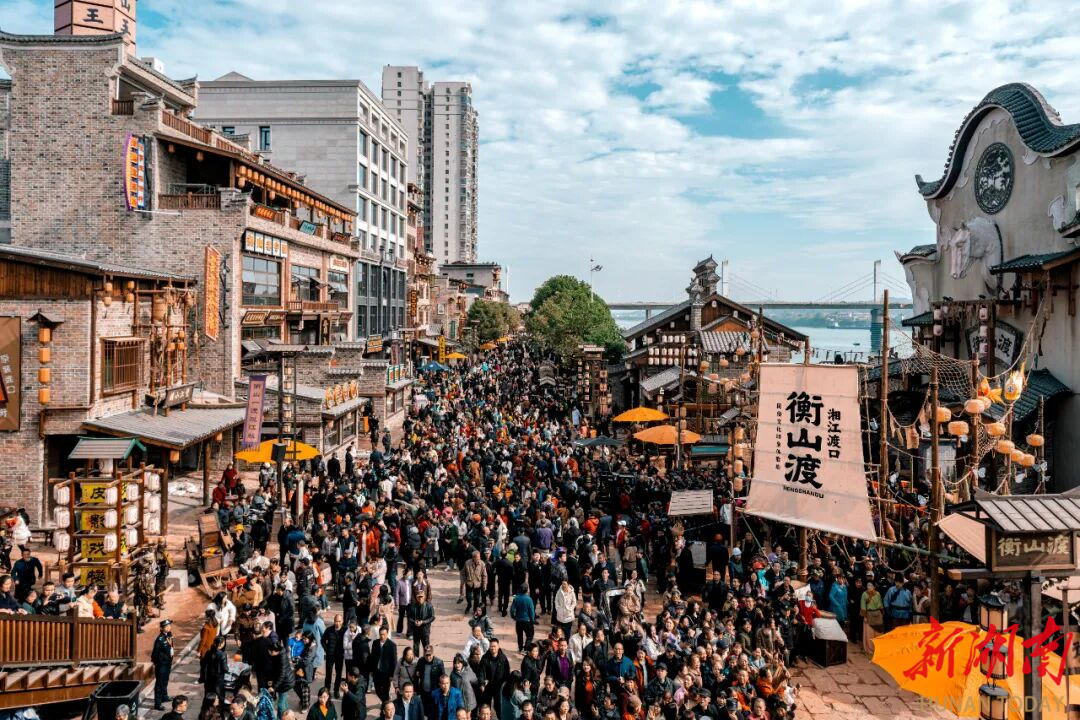 有船摆渡往返两岸,乡民或赶集贩货购物,或过渡衡山城关转道南岳进香求佛还愿,皆从此过往歇息。河堤,上岸的石阶伸入江底,古镇上,一条石板古街旁商铺林立,祠、庙俨然,屋舍整齐。赶集而来乡民,士农工商,贩夫走卒。负者歌于途,行者休于树,摩肩接踵,熙熙攘攘。