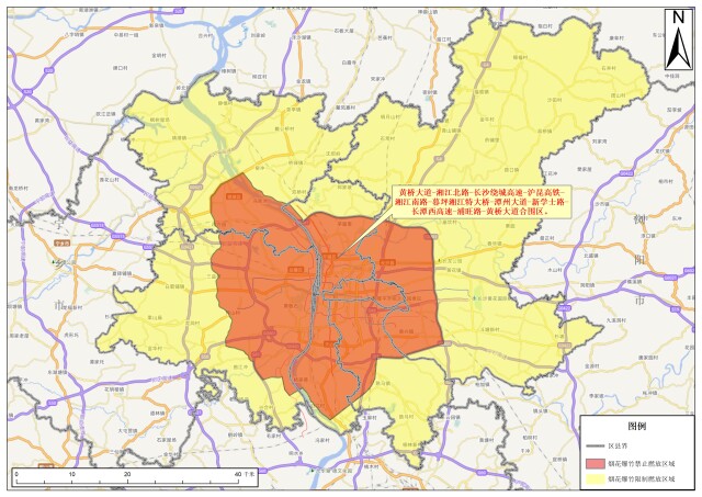 (一)黄桥大道-湘江北路-长沙绕城高速-沪昆高速铁路-湘江南路-暮坪湘江特大桥-潭州大道-新学士路-长潭西高速-浦旺路-黄桥大道合围区域;