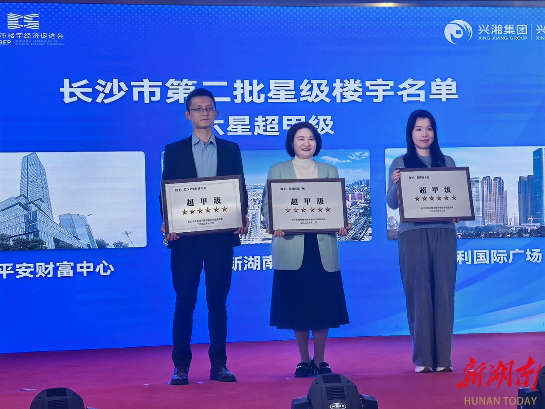 会上,星级楼宇代表、市楼促会理事单位天城国际广场项目负责人欧阳花蓉分享了六星超甲级商务楼宇招商运营服务经验及2024年获评星级楼宇至今创造的社会效益和经济效益;市楼促会副理事长单位万物梁行湘赣区域总经理黄溪宣读长沙市第二批星级楼宇认定名单,新湖南大厦、保利国际广场等被评为六星超甲级。