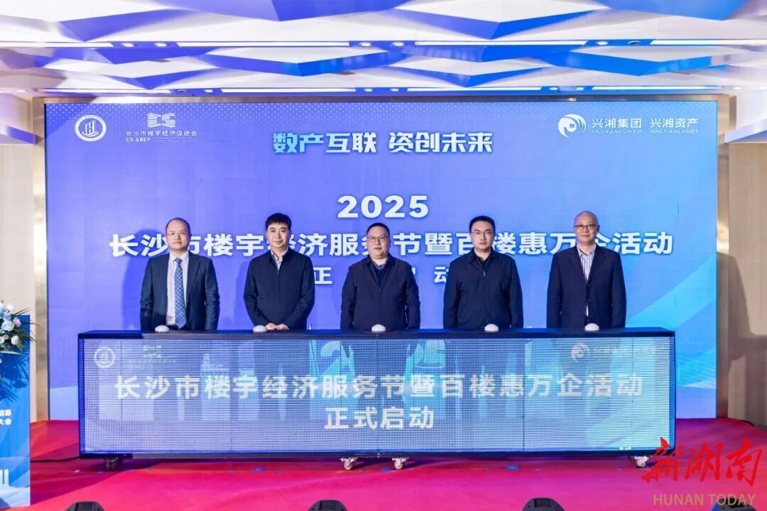 12月19日下午,以“数产互联、资创未来”为主旨的2025年长沙市楼宇经济服务节暨百楼惠万企行动启动会在长沙市五星甲级商务楼宇汇景发展环球中心 A 座 19 楼成功举行。 本次活动由长沙市发展和改革委员会、长沙市商务局指导,长沙市楼宇经济促进会(简称“市楼促会”)、湖南兴湘资产经营管理集团有限公司主办,湖南发展高新置业有限公司、长沙耀楼产业互联科技服务有限公司承办。