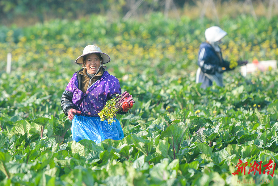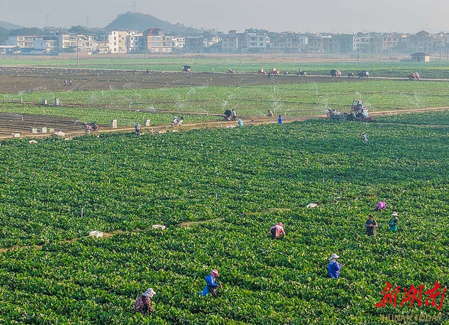 12月19日,道县营江街道芒头寨村蔬菜基地,农民加紧采摘蔬菜,保障供应。近年来,该县依托生态优势发展绿色蔬菜产业,产品畅销粤港澳大湾区市场。 蒋克青 摄(湖南图片库)
