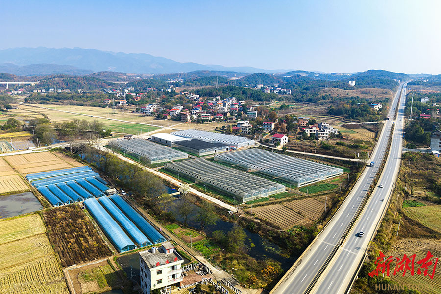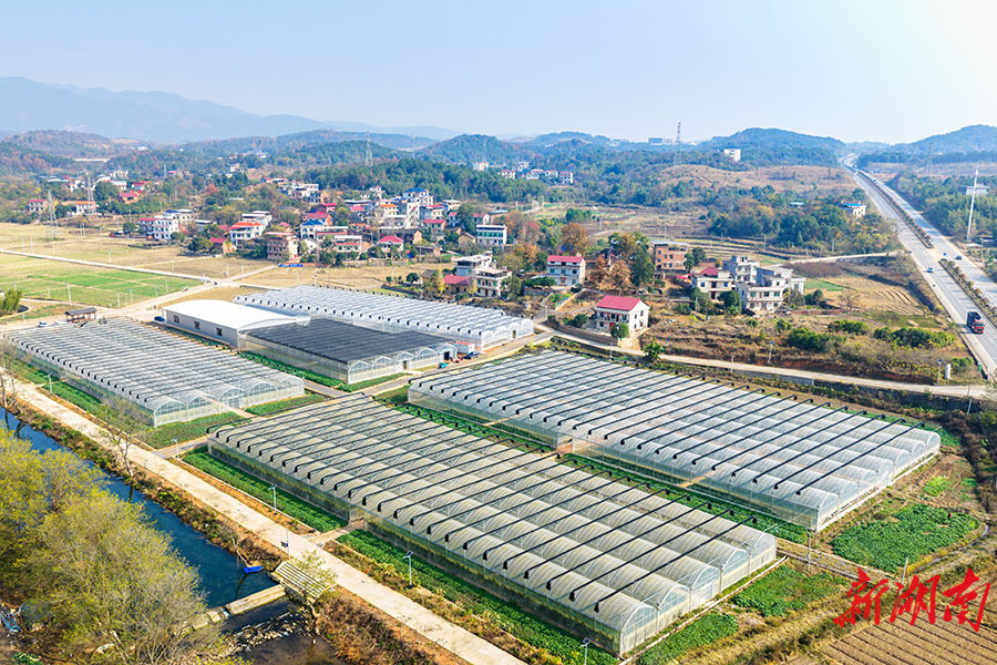 12月18日,东安县白牙市镇宥江桥村,农业产业园与青山、民居、道路、河流、田园交相辉映。近年来,当地依托城郊区位优势和良好的农业经济产业链基础,通过“水稻+”轮作模式发展现代观光农业,实现四季生产与景观效益双赢,有效带动村民增收致富。 蔡小平 摄(湖南图片库)