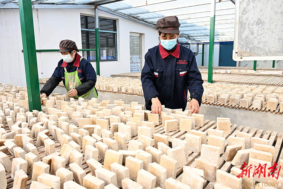 12月19日,澧县澧南镇天子山社区,企业员工在晾晒腊豆腐。入冬以来,澧县道水瑶豆制品有限公司加紧生产传统豆制品,备战元旦春节消费旺季,满足节日市场需求。 柏依朴 彭思媛 摄影报道(湖南图片库)