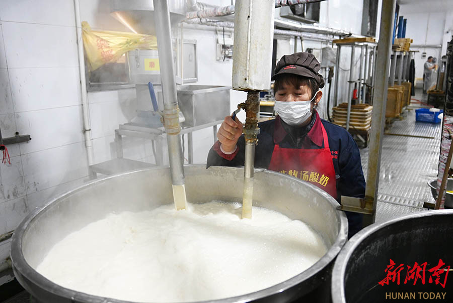 12月19日,澧县澧南镇天子山社区,企业员工在豆腐加工车间忙碌。入冬以来,澧县道水瑶豆制品有限公司加紧生产传统豆制品,备战元旦春节消费旺季,满足节日市场需求。 柏依朴 彭思媛 摄影报道(湖南图片库)