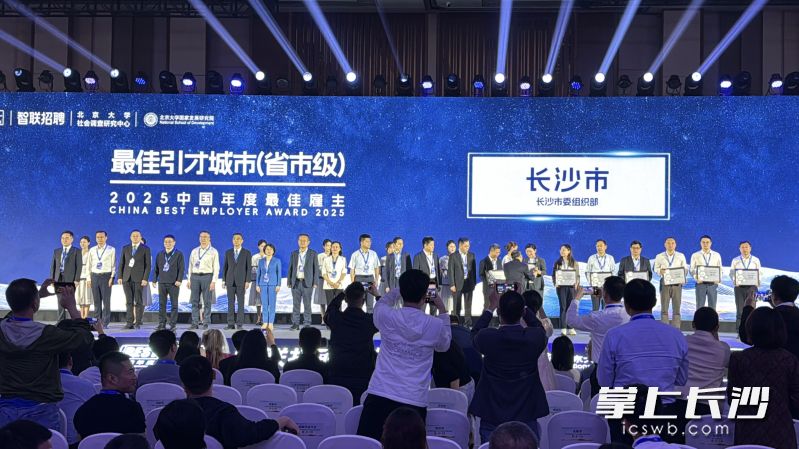 12月19日,海南三亚,2025中国年度最佳雇主颁奖盛典公布评选结果,长沙从众多城市中脱颖而出,荣膺“中国年度最佳引才城市”。