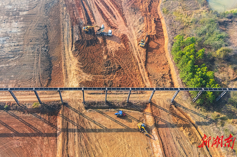 12月19日,永州市冷水滩区上岭桥镇八礼村,高标准农田建设如火如荼。 近年来,冷水滩区通过整合耕地、完善基础设施等措施,提升农业综合产能,有效促进农民增收。 雷中祥 摄(湖南图片库)