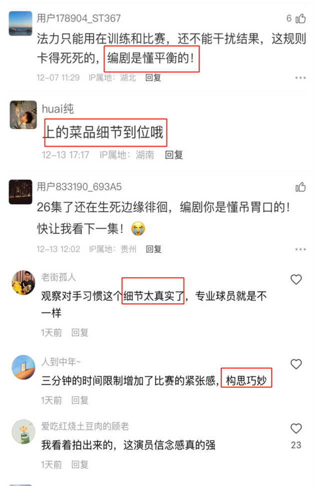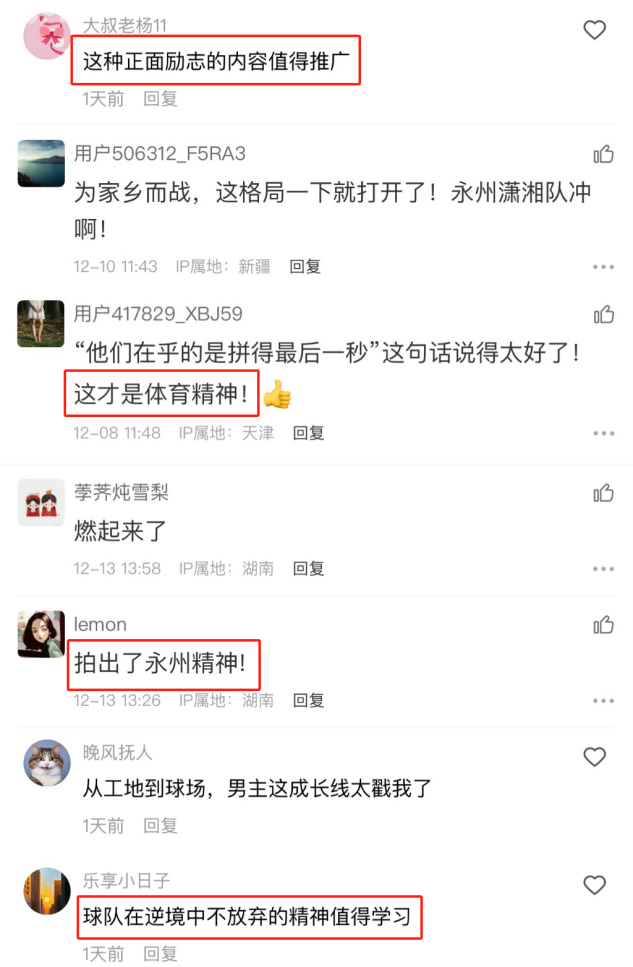此外,该剧在被网友调侃为“叫花子球场”的永州球场实地拍摄,剧中大量角色由真实人物“本色出演”,永州队“人气王”球员邓泽林、陈俊杰、张家豪在剧中惊喜客串,将赛场上的昂扬斗志自然带入剧情,赛场外的球迷凭“挂票”观赛的情节令人莞尔。