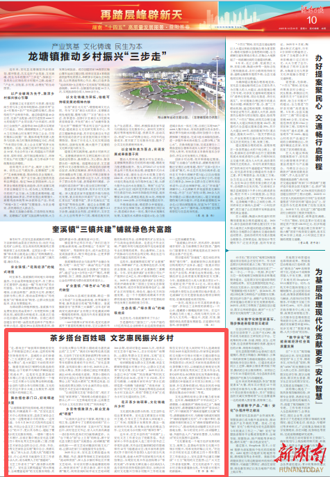 “文化繁荣是一个地方经济发展的软实力、凝聚力,县委始终坚持文化振兴引领乡村振兴,传承发扬好梅山文化。”在近日召开的安化县文联成立四十周年暨文艺工作座谈会上,安化县委书记潘文剑解读“十五五”规划的文艺蓝图,让广大文艺工作者备受鼓舞。在文化的滋养下,安化乡村正焕发着蓬勃生机,书写着乡村振兴的新篇章。(贺 珍 龚 伟)