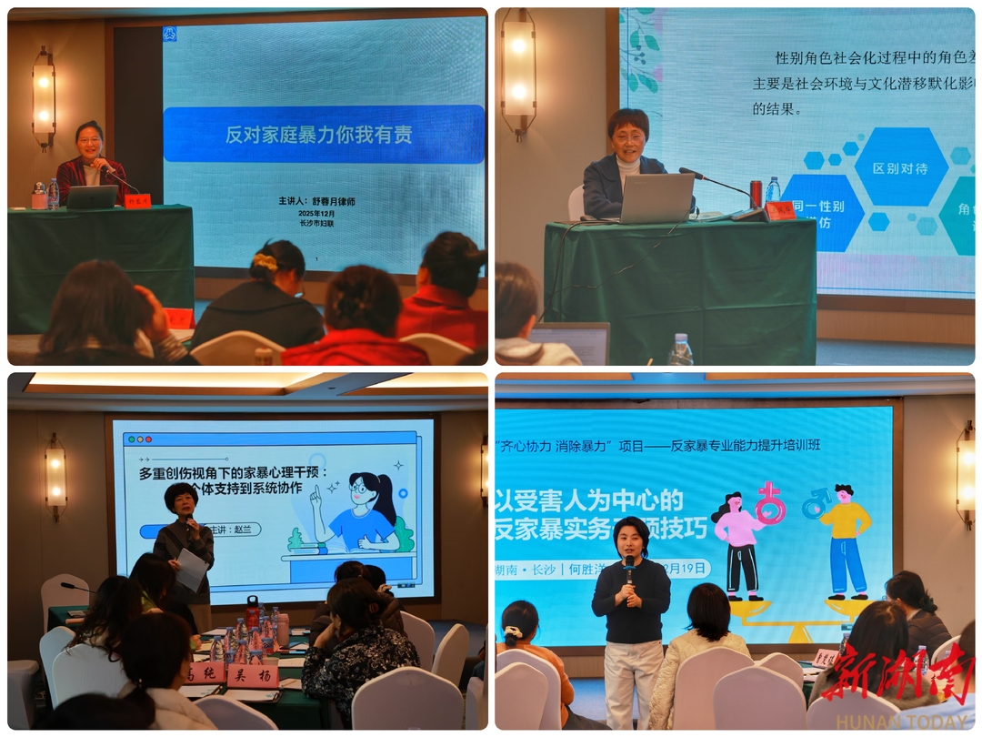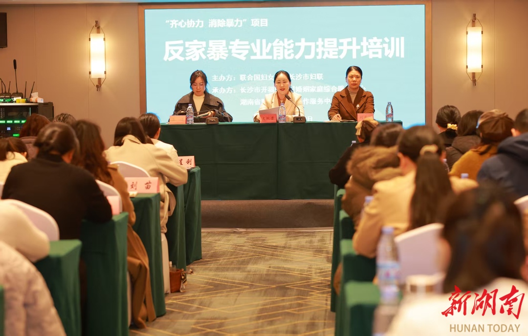 湖南日报·新湖南客户端12月20日讯(记者 王晗)12月18日至19日,由联合国妇女署与长沙市妇联联合主办,长沙市开福区鑫晨婚姻家庭综合服务中心、湖南省麓山枫社会工作服务中心共同承办的“齐心协力 消除暴力”反家暴专业能力提升培训班顺利举行。来自各区县(市)妇联、市12338妇女儿童“一站式”维权关爱中心及“星城幸福家”婚调服务站的60余名一线维权专干齐聚一堂,沉浸式学习反家暴实务技能,为妇女儿童权益保护筑牢专业根基。