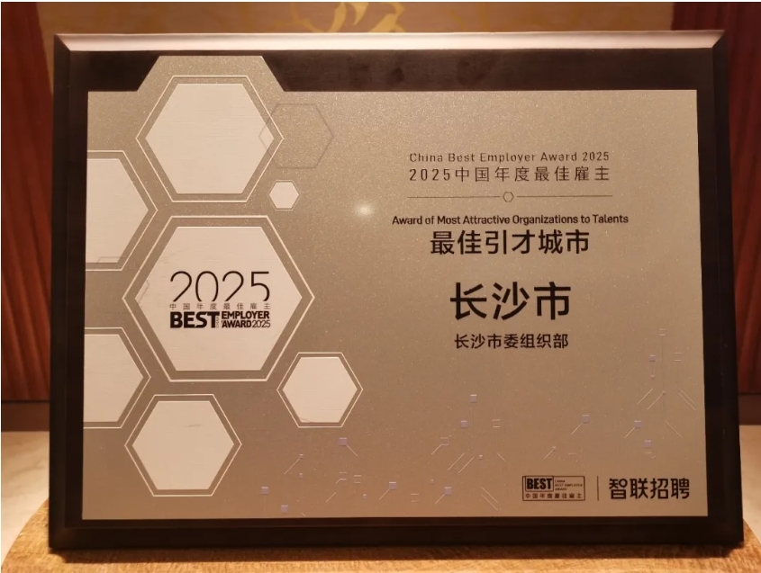 长沙在2025中国年度最佳雇主颁奖盛典中获评“中国年度最佳引才城市”。