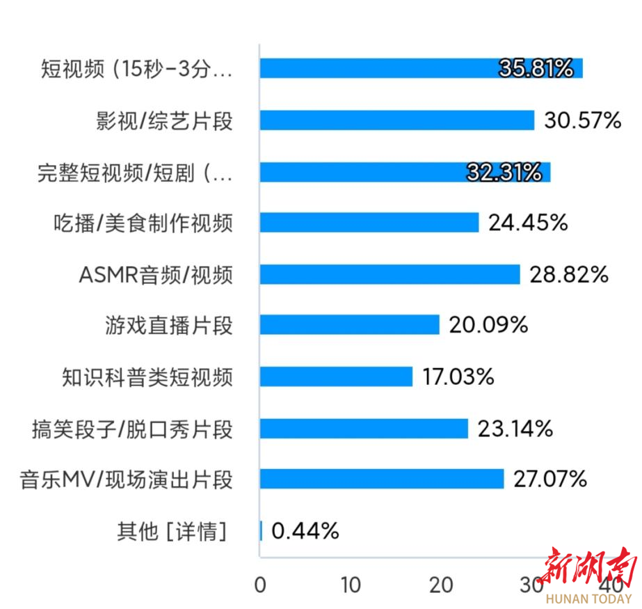 “吃饭就想看点不用费脑子的,笑一笑或者暖一下就行”。内容偏好上,轻松搞笑与治愈温情类,是这片餐桌上最主流的两味“数字调味料”,精准对应着年轻人短暂休憩时对情绪纾解与情感陪伴的需求。节奏紧凑的短剧、高能影视片段(两者合计占比超七成)最受欢迎,因为它们能在三五口饭的间隙,迅速完成一个情绪的起承转合。“等一集剧更新,刚好配一顿午饭,化身时间管理大师。”大三的李哲笑着说。相比之下,需要高度专注的信息科普类内容则较少被选择,因为对于大学生来说,此刻的屏幕,首要任务是提供“情绪价值”。