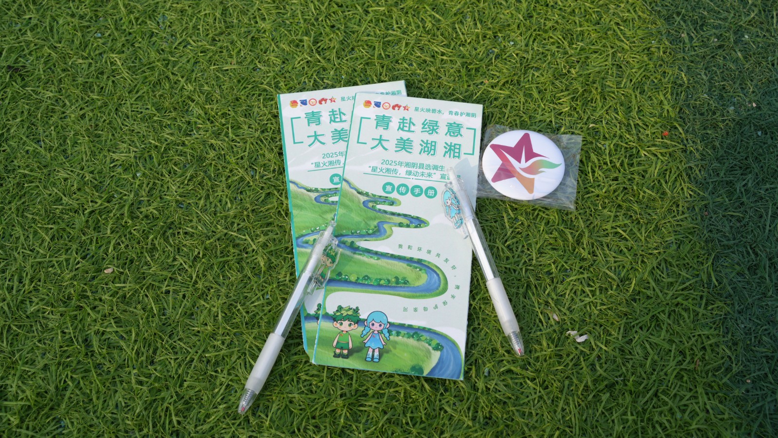 活动现场,由宣讲团自主设计的专属视觉标识首次正式亮相——以“以青春星火,燃生态文明之炬”为理念的队徽,象征着选调生们用青春力量点燃生态保护的火种;活泼可爱的IP形象“罗小绿”与“湘小蓝”,则以清新活泼的造型传递出绿色环保、守护碧水的理念,迅速拉近与同学们的距离,成为传播生态文明的形象使者。