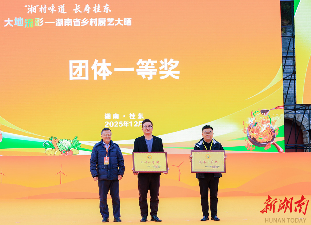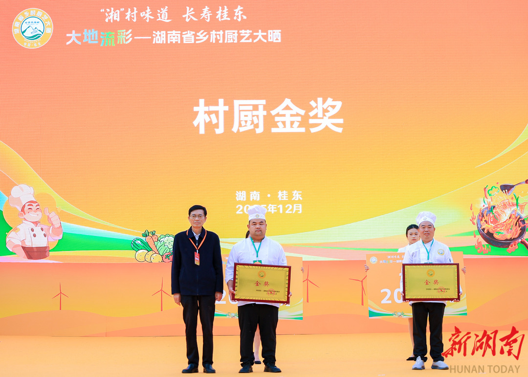 其中,张家界市、怀化市代表队获得团体一等奖,郴州市、湘潭市、湘西州代表队获得团体二等奖,常德市、娄底市、永州市获得团体三等奖。在个人奖方面,湘西州代表队田宏飞、娄底代表队孙立彬获得村厨金奖,郴州代表队邓稳桃、常德代表队陈丛军、衡阳代表队曾昭余荣获村厨银奖,株洲代表队黄业林、娄底代表队王波、衡阳代表队罗文娇获得铜奖。大“晒”还评选出“最具市场潜力奖”“最具创意新锐奖”“最佳乡土风味奖”等奖项。此次竞技不仅是对乡村厨艺的检验,更推动了地域饮食文化的传承与推广。