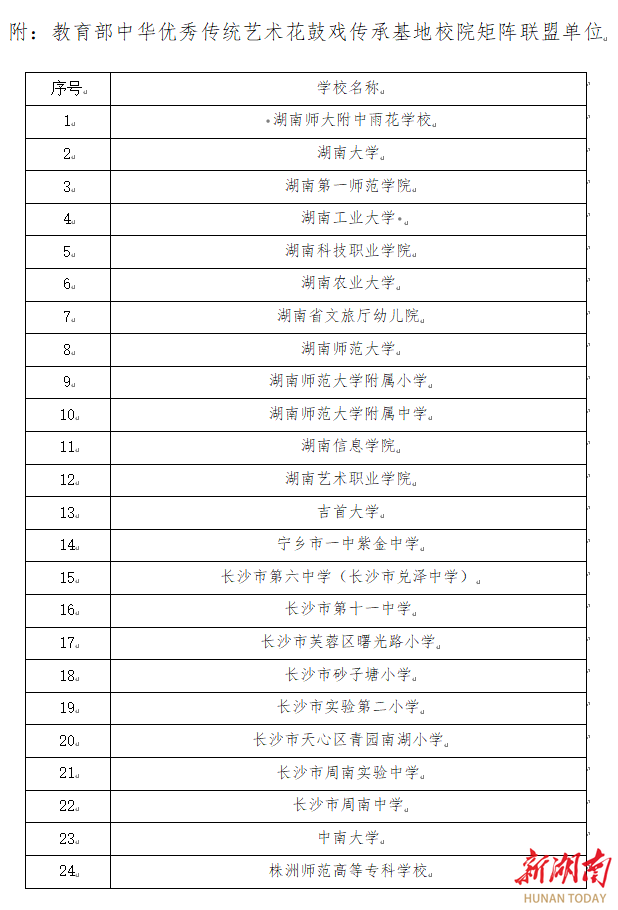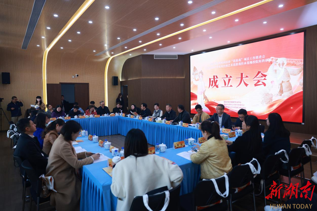 据悉,教育部中华优秀传统艺术花鼓戏传承基地是2018年由教育部认定的第一批中华优秀传统文化传承基地。湖南师范大学作为基地的建设单位,近年来不断创新花鼓传承理念、优化花鼓传承形式、精炼花鼓传承内容,在建设中取得了卓有成效的花鼓传承与传播业绩。为更好地汲取湖南花鼓智慧、弘扬湖南花鼓精神、传播湖南花鼓价值,引领大中小幼师生做优秀传统文化湖南花鼓戏的忠实继承者和弘扬者,教育部中华优秀传统艺术花鼓戏传承基地与省花鼓戏传承保护中心主动对接并达成共识,筹建成立花鼓戏传承校院矩阵联盟,共同携手打造大中小幼一体化花鼓戏传承网格。