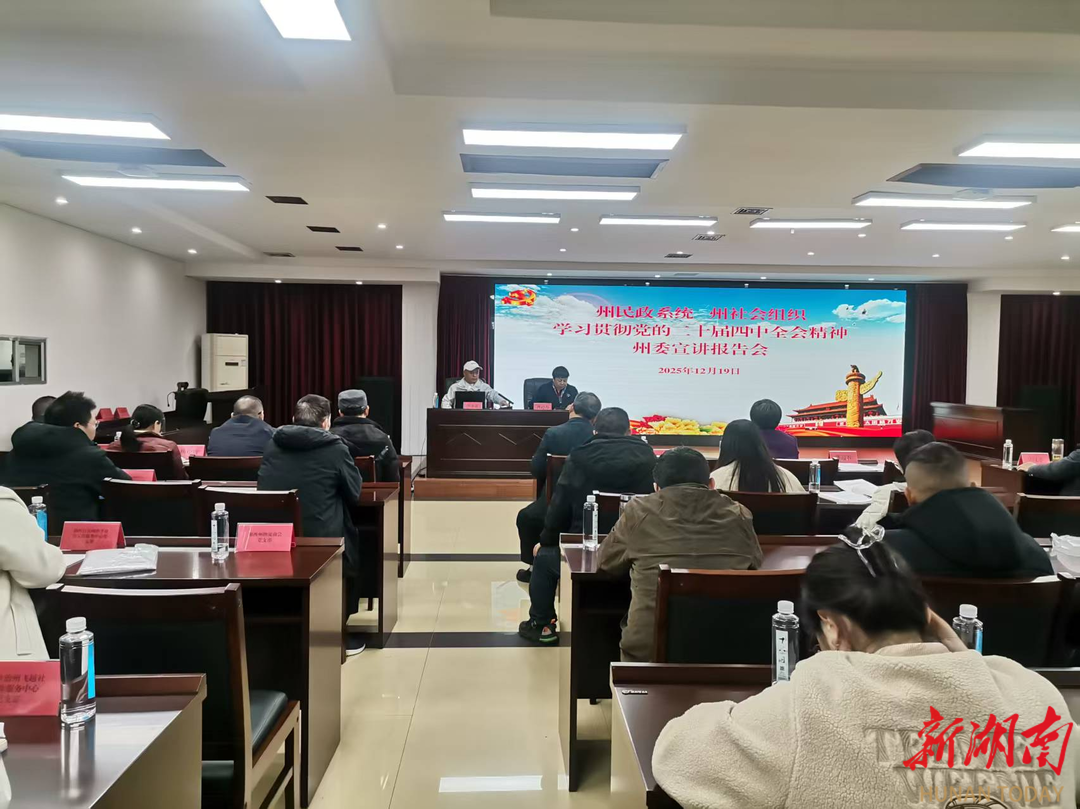 新湖南客户端12月20日讯(通讯员 孙世雄)12月19日,湘西土家族苗族自治州民政系统、州社会组织学习贯彻党的二十届四中全会精神专题宣讲报告会召开。湘西州委宣讲团成员、州委党校副校长吴永良作专题辅导报告,州民政局机关全体干部、局属单位副科级以上领导干部和州社会组织基层党组织负责人参加会议。