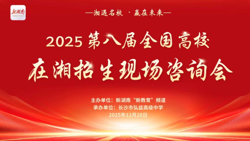 12月20日,由新湖南“新教育”频道主办、长沙市弘益高级中学承办的第八届“湘遇名校·赢在未来”全国高校在湘招生现场咨询会,于长沙市弘益高级中学开幕。