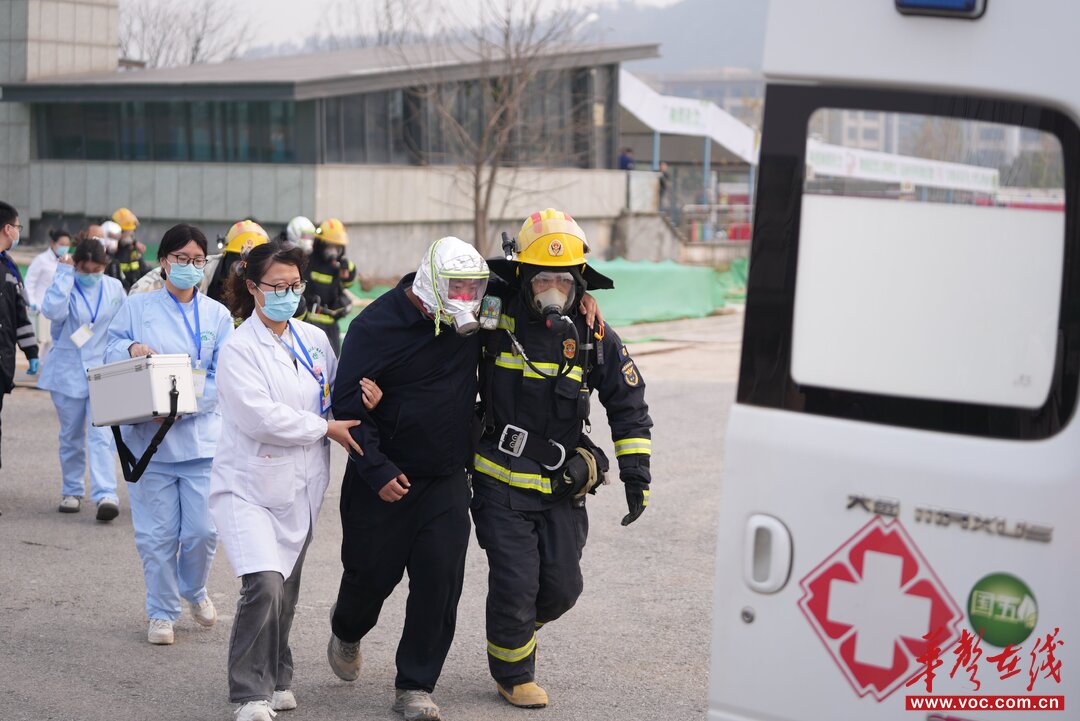(消防员和医护人员转移伤者。江毅 谭皓仁 摄)